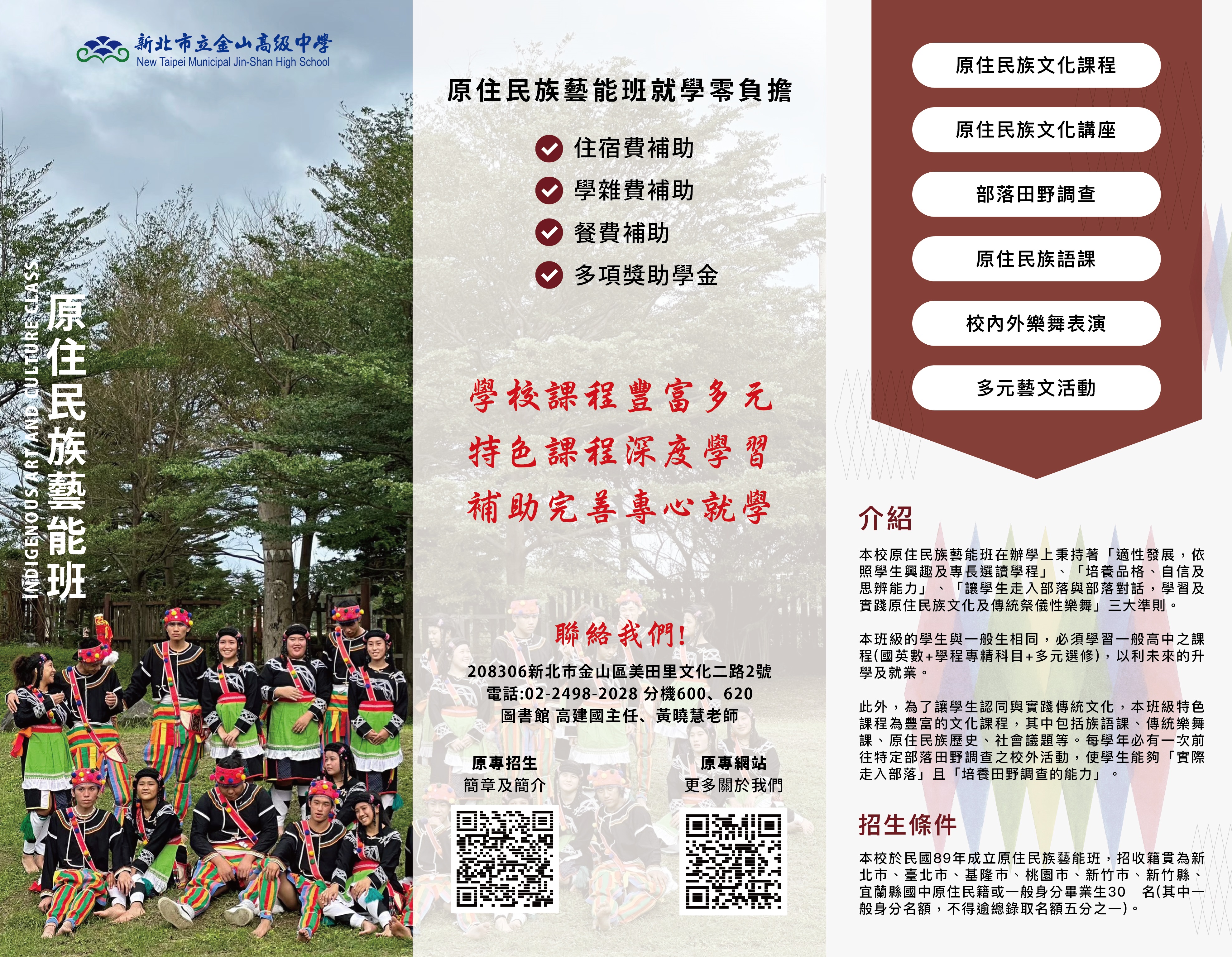 新北市立金山高中113學年度原住民族藝能班單獨招生資訊